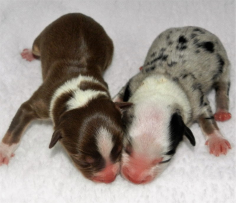 RED TRI GIRL AND BLUE MERLE GIRL