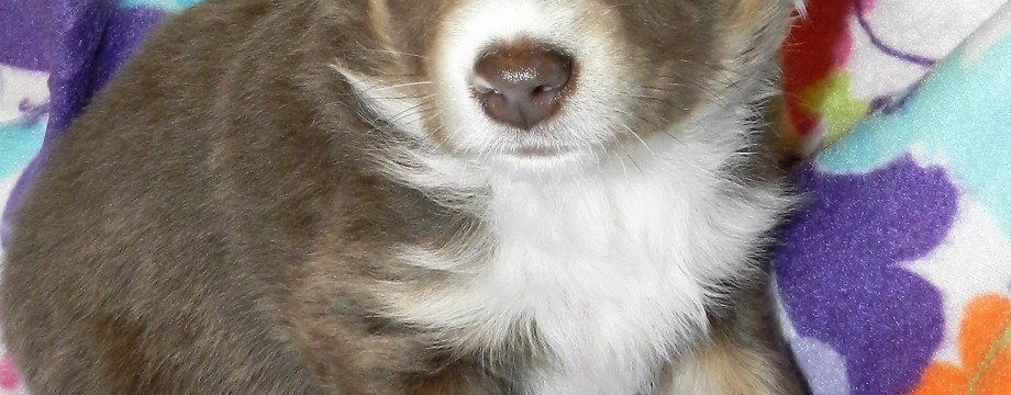 This little and I mean Little girl is still looking for a forever home. She will make a great lap dog, love to cuddle and give kisses. She should mature at 20 to 25 lbs. Kelly is a Red Tri Dilute female out of Fancy and Wrecker.