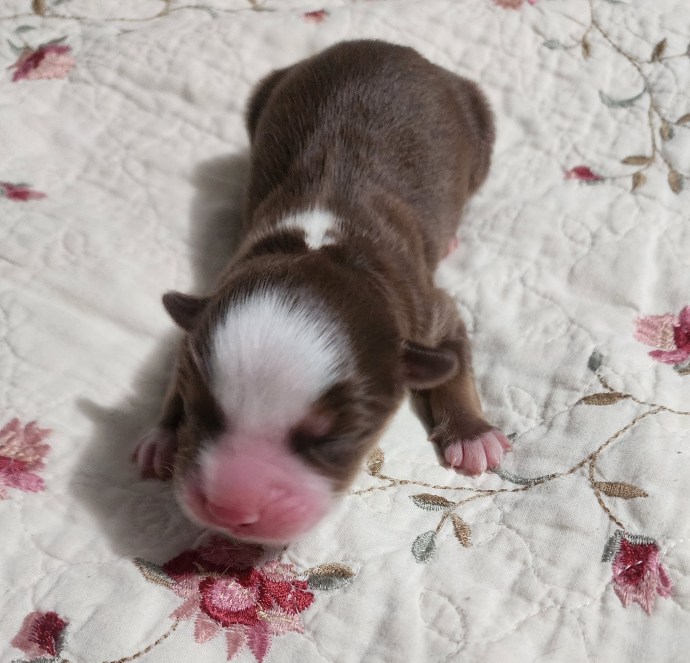 Bindi had one beautiful pup Dark Red Tri Male. Will be ready for furever home Aug 3rd. Please call if interested in this beautiful little boy. He should be about 35lbs and 16 inch’s tall. AKC Reg and mirco chipped.
