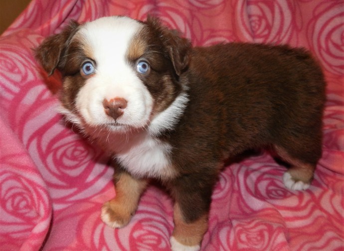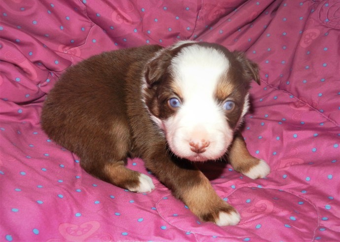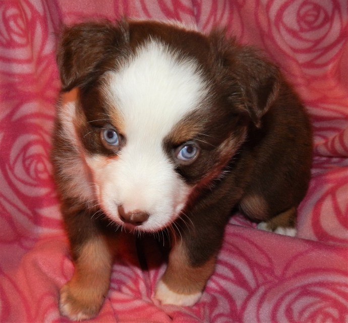 Well, here they are four weeks old, all the puppies are spoken for at this time. Three beautiful babies. These pups are AKC reg. and come with first shots and microchipped. They can go to their furever homes Dec.26 ALL PUPS ARE SPOKEN FOR AT THIS TIME