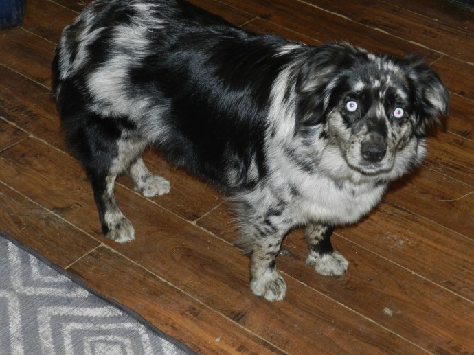Welcome BEARPOND’S OVER THE MOON This is one rare female, she has no white is a BI and is a tweed. Not to mention she is built rugged as can be. Moon is 16 1/2 inch’s and about 40 lbs. She is extremely outgoing, loves all humans and gets along fine in the pack. I want to thank Bear Pond Aussies for letting Kicks and Giggles add this beautiful female to our program. More pictures to come! Her parents are tested. She will be bred in her next heat! Moon is AKC reg.